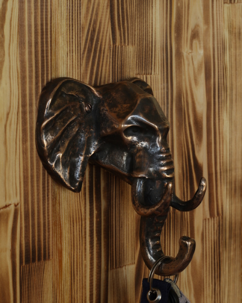 Этот настенный крючок в виде головы слона - не просто функциональная вещь, а настоящее произведение искусства. Выполненный в технике художественного литья из настоящей бронзы, он сочетает в себе мощь дикой природы и изысканность ручной работы.